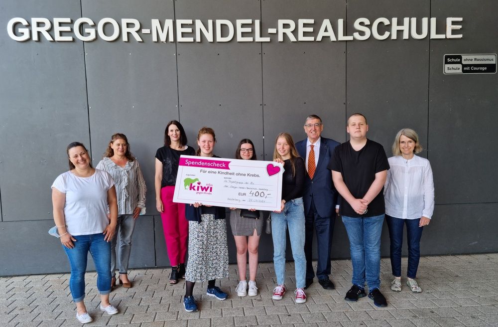 Pandemiebedingt entschlossen sich einige diesjährige Absolventinnen und Absolventen der Gregor-Mendel Realschule ihr Preisgeld in Höhe von 400.- € der gemeinnützigen Organisation „Ein Kiwi gegen Krebs“ zu spenden, um die Forschung des KITZ Heidelberg zu unterstützen.